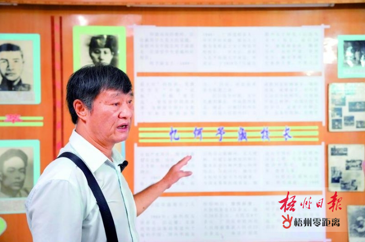 “抗戰時期,梧州女中一名廣東高明籍的生物教師羅伯璘也為梧州的抗日救亡運動作出重要貢獻。”在梧州三中文史館里,周廣熙對展覽中介紹的羅伯璘進步事跡解說道。羅伯璘不僅在課堂上向學生宣傳抗日愛國思想,還帶領學生深入農村進行抗日宣傳。學校搬遷后,他沒有隨校遷移,而是和其他教師帶領100多名孤兒疏散到蒼梧縣大坡鄉下避亂,直到日本投降后才返回梧州。