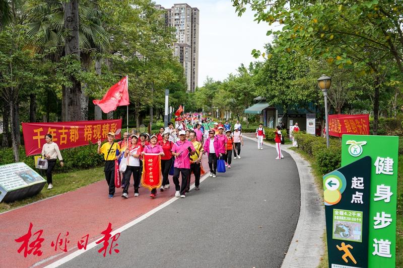 11月11日,2025年梧州市“九九重陽”全民健身主題活動暨全國老年人健步走大聯(lián)動梧州分會場活動在玫瑰湖公園舉行。 記者 李燦明 攝