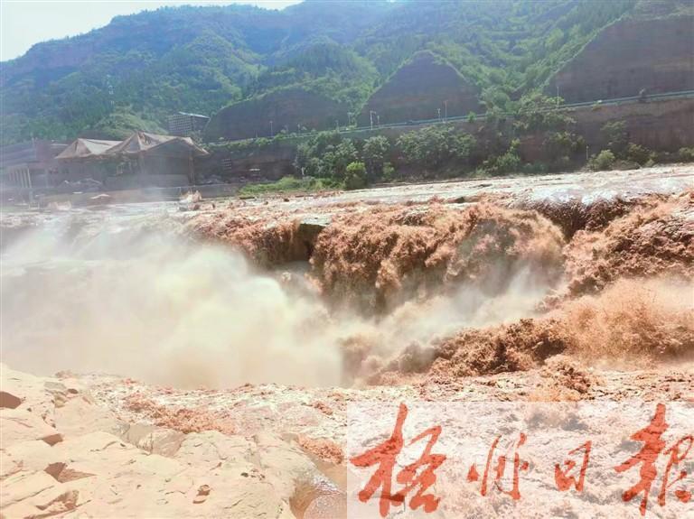 穿過蜿蜒的棧道,慢慢靠近觀景臺,只見那滔滔黃河水,排山倒海奔涌而至,一浪高于一浪,如千軍萬馬沖鋒陷陣、奮勇爭先。黃色的水霧,一陣一陣地撲面而來,潤濕衣襟。那如低音炮般持續不斷的轟鳴聲由輕至重、由遠而近,既像脈搏跳動,又如心臟起搏,每一下擊打,都在把內心深處的血性逐漸喚醒,令獨屬于國人的靈魂顫動。